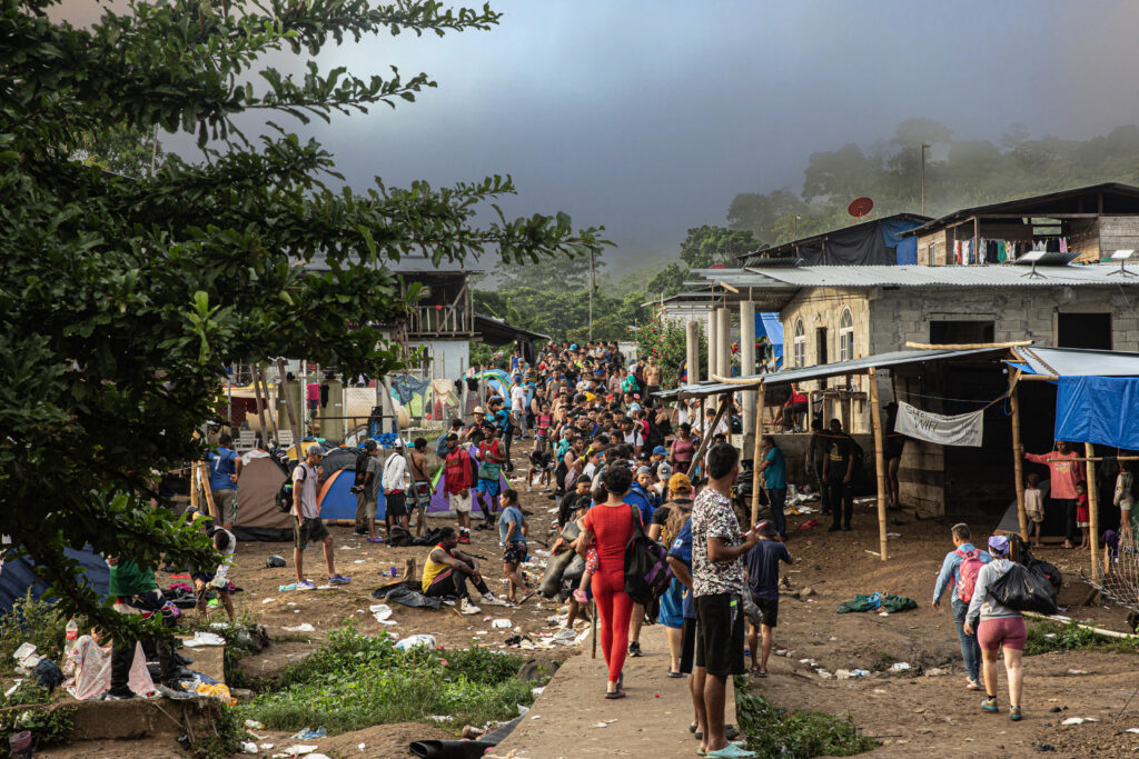 Migrants pass through Bajo Chiquito. The indigenous community went from having 300 inhabitants to seeing between 1,500 and 3,000 migrants pass through daily. Panama, 2023. © Juan Carlos Tomasi/MSF