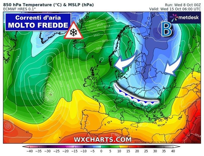 Masse d’aria molto fredde in discesa dal Nord Europa verso il Mediterraneo e l’ItaliaTENDENZA FINE MESE
