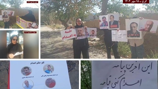 On Wednesday, October 8, during the global campaign week against the death penalty, the families of political prisoners and grieving mothers held protest acts in Tehran, Karaj, Tabriz, Rafsanjan, Sanandaj, Bushehr, Yazd, Shahr-e Qods, Saqqez, Ilam, Robat Karim, Fariman, Gonbad-e Kavus, Mashhad, Garmsar, Babol, Sabzevar, Shiraz, Zahedan, Kangavar, Sonqor, Yasuj, and Astaneh-ye Ashrafiyeh. They organized protest gatherings, posted posters, wrote slogans on walls, and issued statements demanding the abolition of death sentences and the release of political prisoners.