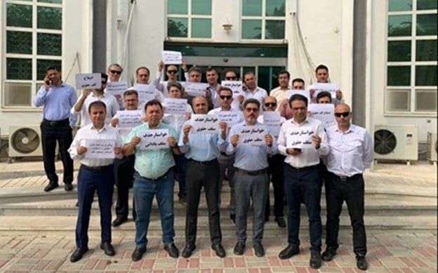 On Monday, October 6, a wave of protests by telecommunications retirees took place in Tehran and at least nine other cities, including Tabriz, Isfahan, Shiraz, Kermanshah, Marivan, Hamedan, Zanjan, Khuzestan, and Gilan. The protesters demanded an end to the looting of retirees’ assets by institutions affiliated with the Revolutionary Guards and the Execution of Imam Khomeini’s Order Headquarters. Simultaneously, official oil workers in southern regions—including Asaluyeh, South Pars, and Ahvaz—protested unequal pay conditions, systemic corruption, and lack of job security.