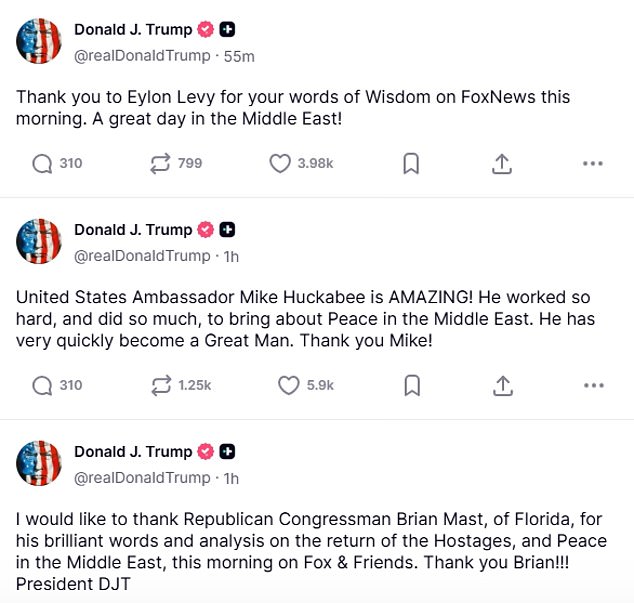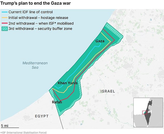 Follow the Daily Mail’s live updates on Donald Trump‘s Gaza ceasefire deal