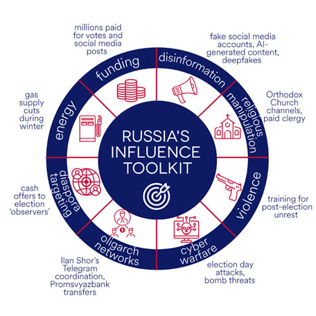 The 2025 campaign saw a further intensification of these influence efforts. A secret network, again coordinated via Telegram, offered to pay people for posting pro-Russia propaganda and anti-PAS disinformation on Facebook and TikTok, and to help carry out selective polling that would overstate pro-Russia support, potentially as part of a plan to dispute the results should they be close. A BBC investigation found links between this network, Shor and one of his organisations, Evrazia, with money sent via a Russian state-owned bank used by its defence ministry.