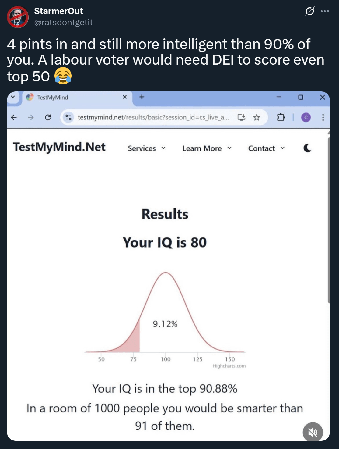Reform is statistically the least educated voting base. Also an IQ of 80 is really bad