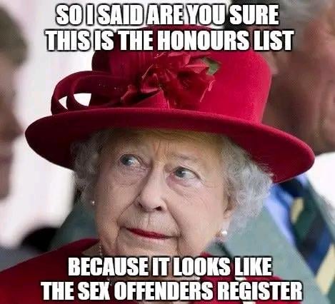 The combination of people with honours who are also convicted sex offenders can’t be a _massive_ pool. Are there any left for him to strip the honours from?