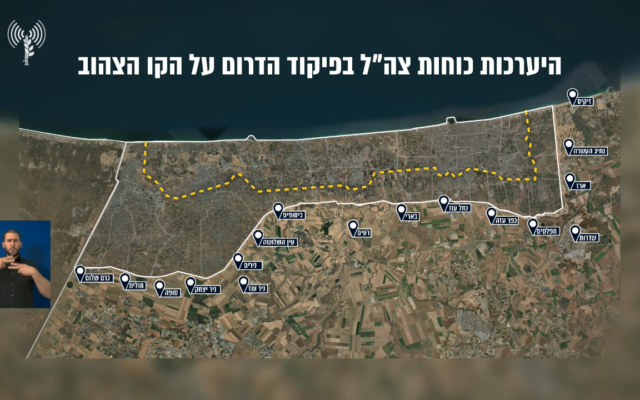This map published by the IDF on October 10, 2025, shows the IDF’s deployment in Gaza following a ceasefire. (Israel Defense Forces)