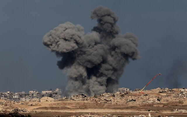A smoke plume billows following Israeli strikes on the Gaza Strip as pictured from across the border in southern Israel on October 10, 2025. (Jack GUEZ/AFP)