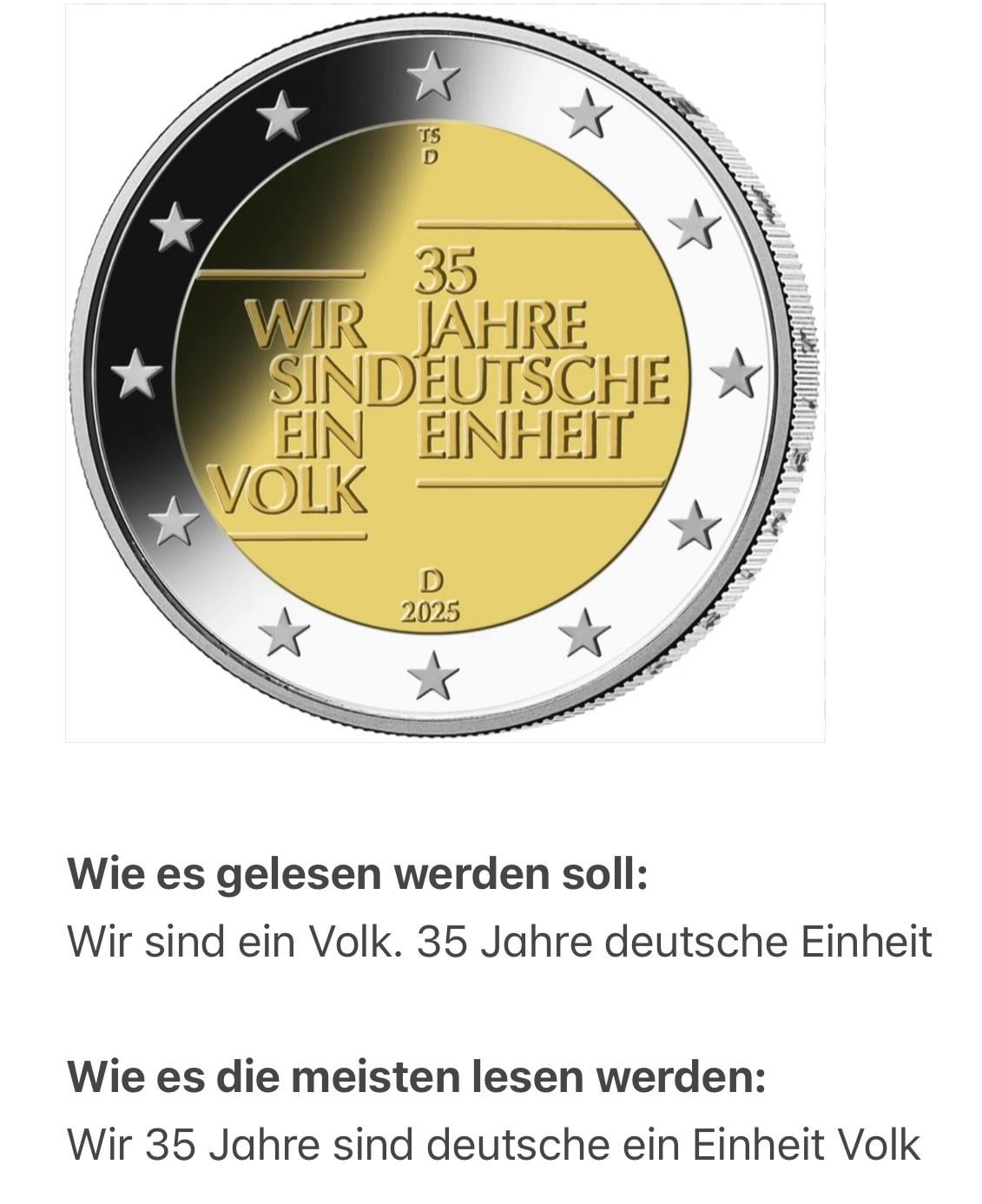 Ich habs das erste Mal als „35 Jahre wir sindeutsche ein Einheit Volk“ gelesen.