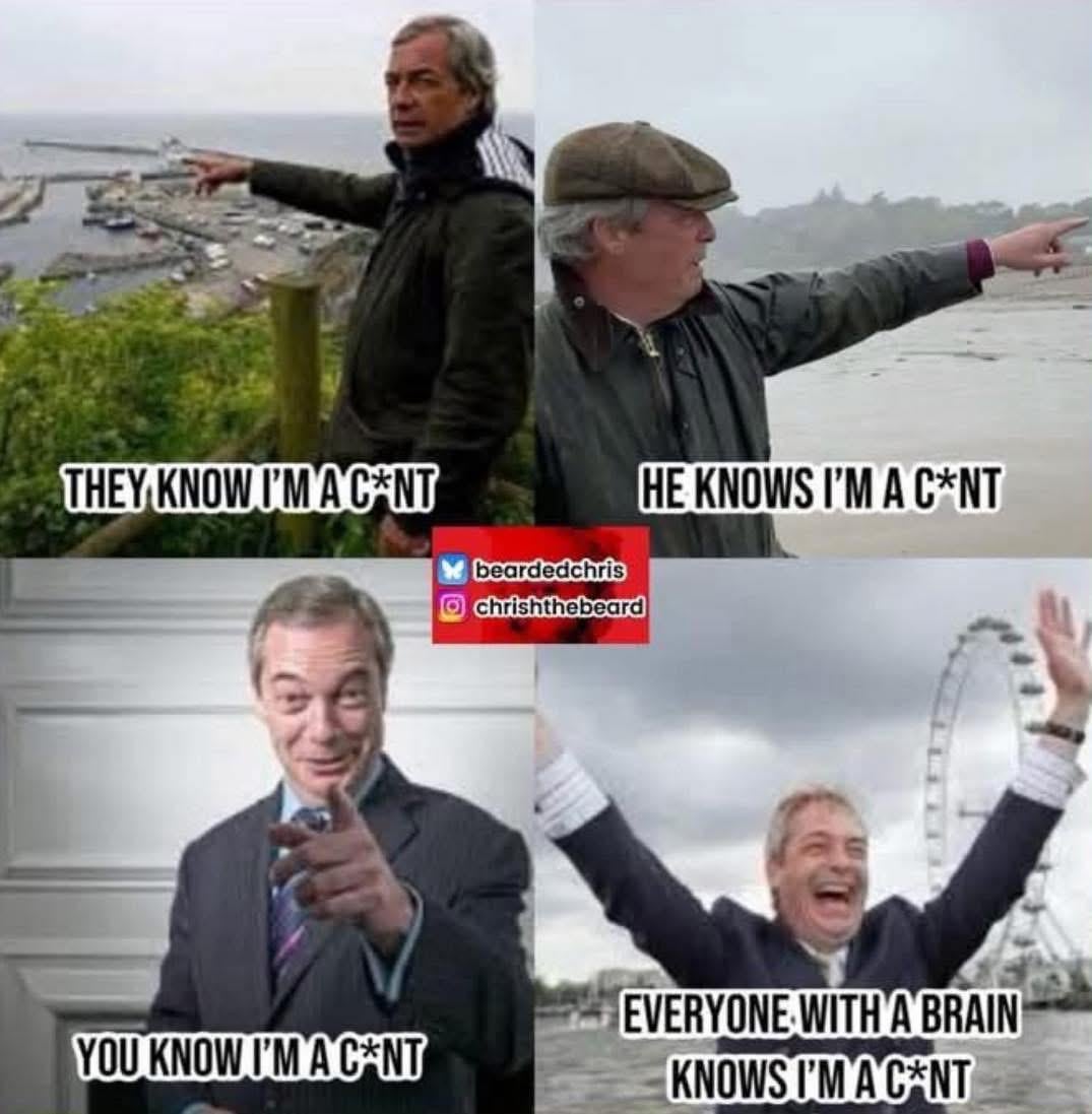 Genuinely why are these memes about Farage on this sub always look like they were made by a 40 year old on Facebook 😂😂