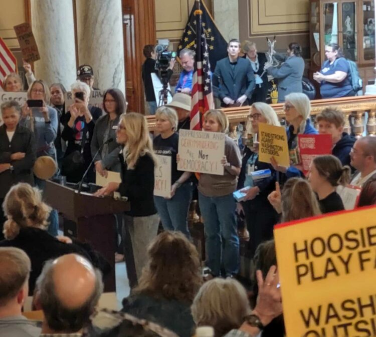 Traveling to Indianapolis to join the Friday protest, Beeker used stark language to describe mid-decade redistricting, calling it unethical, immoral and “one more step toward dictatorship.”