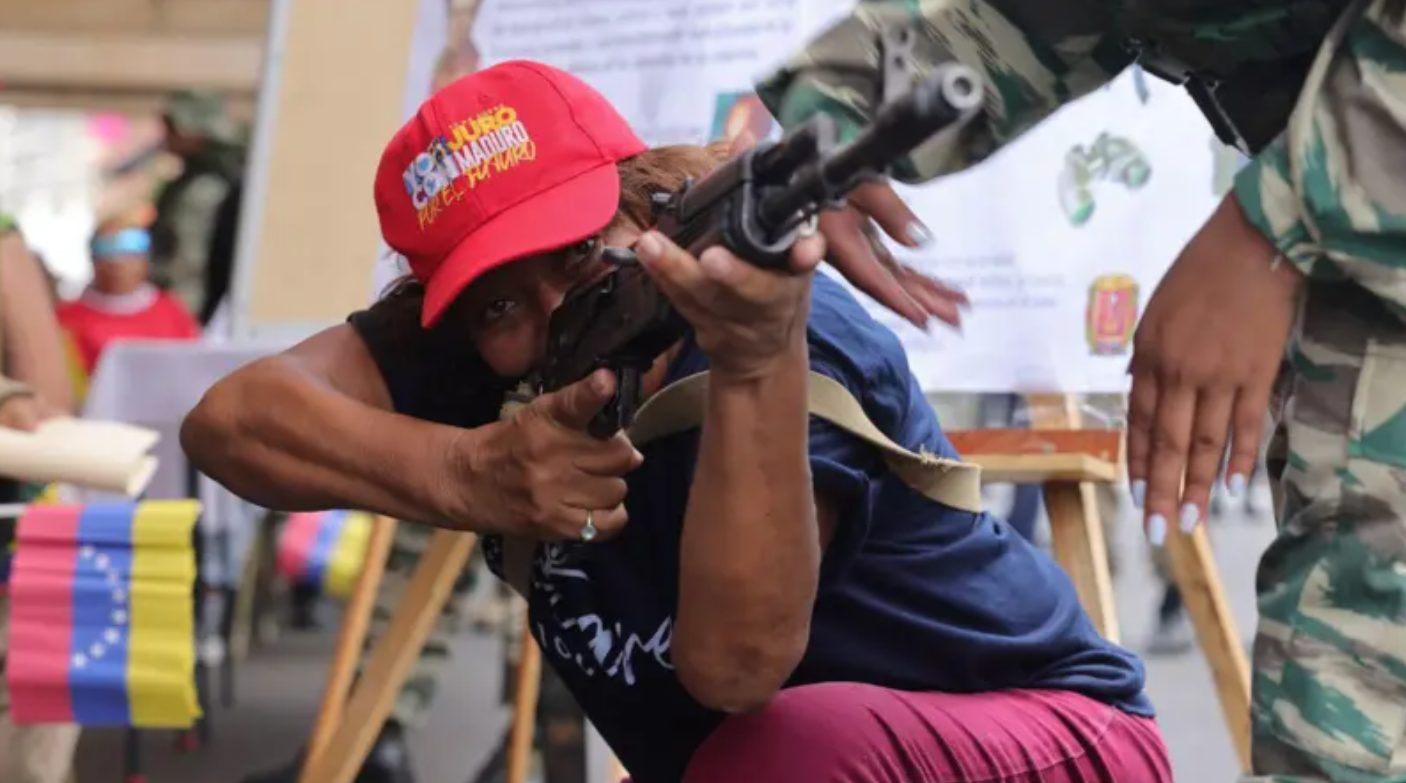 A young woman who voluntarily enrolled in the militia receives military training. (Nicole Kolster / BBC News Mundo)