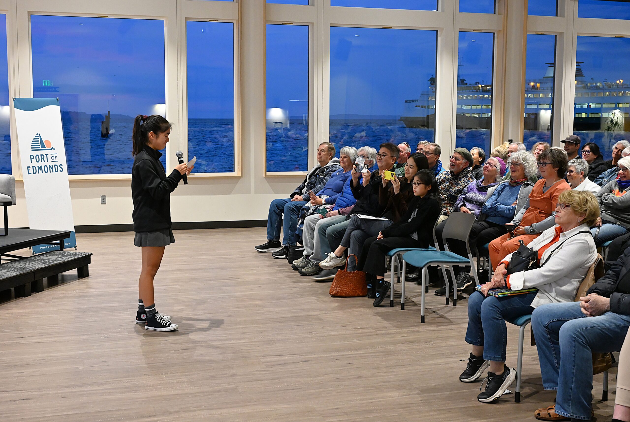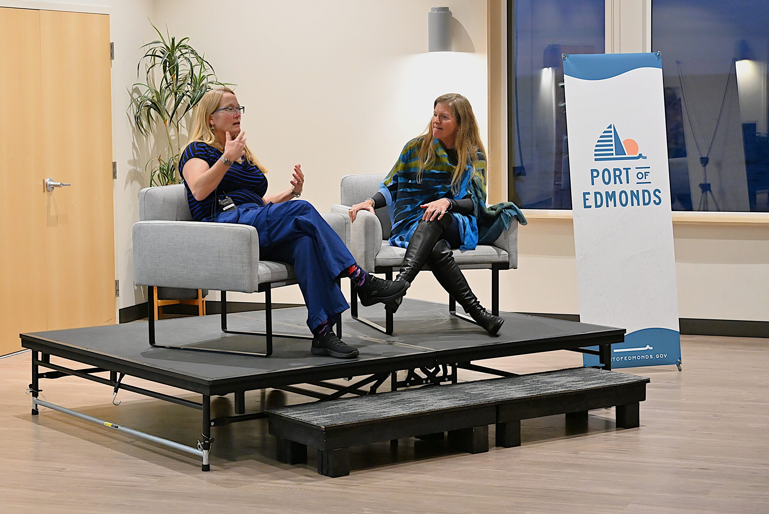 A crowd of 150 people gathered at the Edmonds Waterfront Center (EWC) Oct. 9 to learn more about harbor porpoises from Cindy Elliser, Ph.D, associate director of the Salish Sea Institute and founder/research director of Pacific Mammal Research.