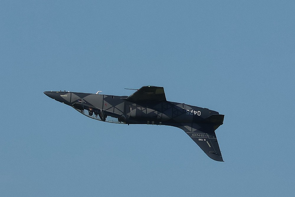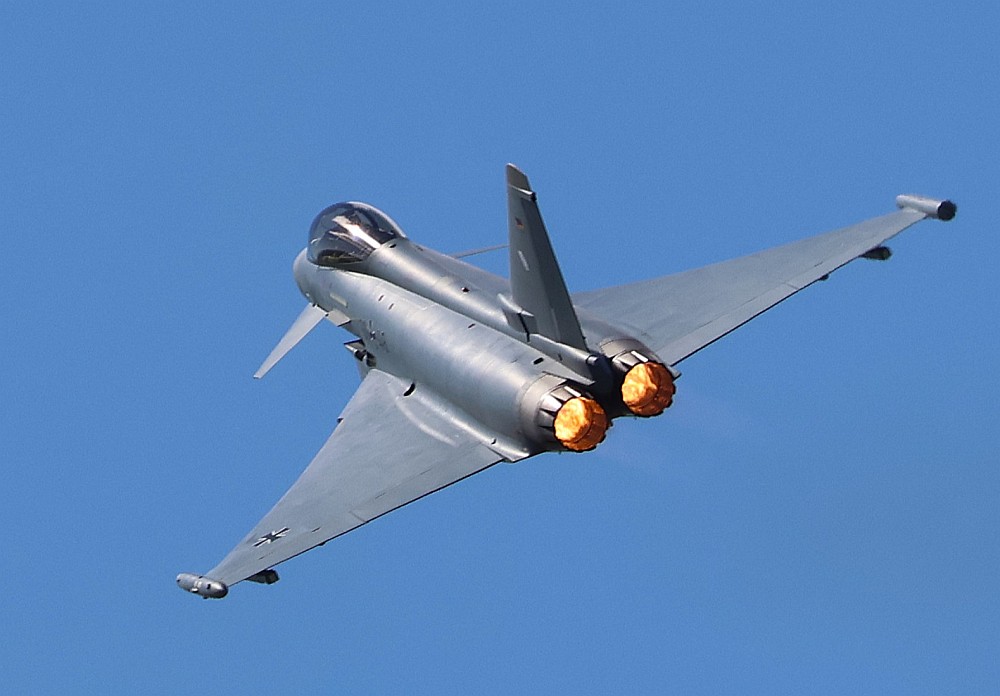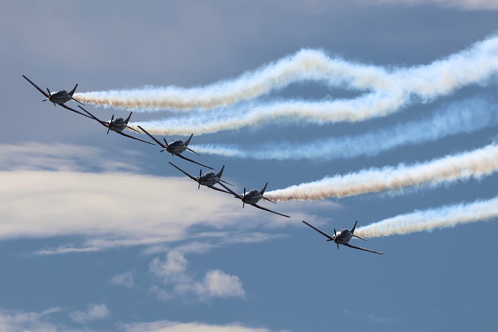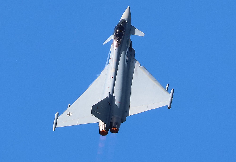 Fliegerische Höhepunkte der NATO-Tage 2025 waren die britischen Arrows sowie der AV-8B Harrier der italienischen Marineflieger und der Low pass einer B-52 der US Air Force.