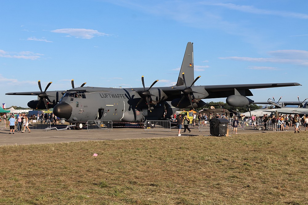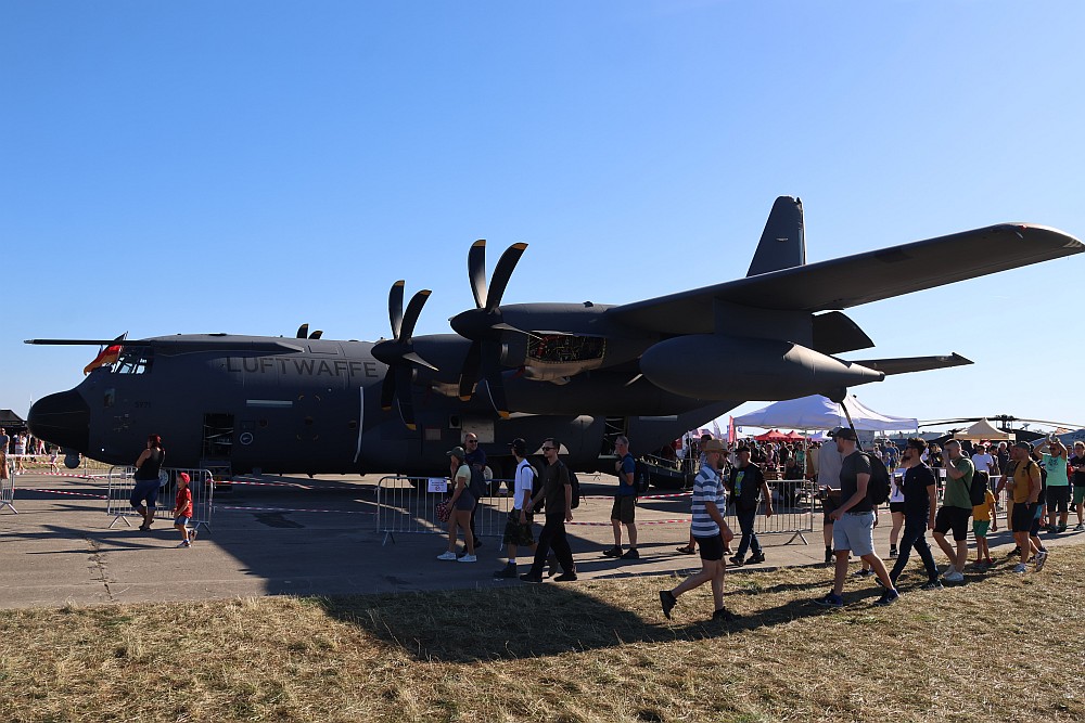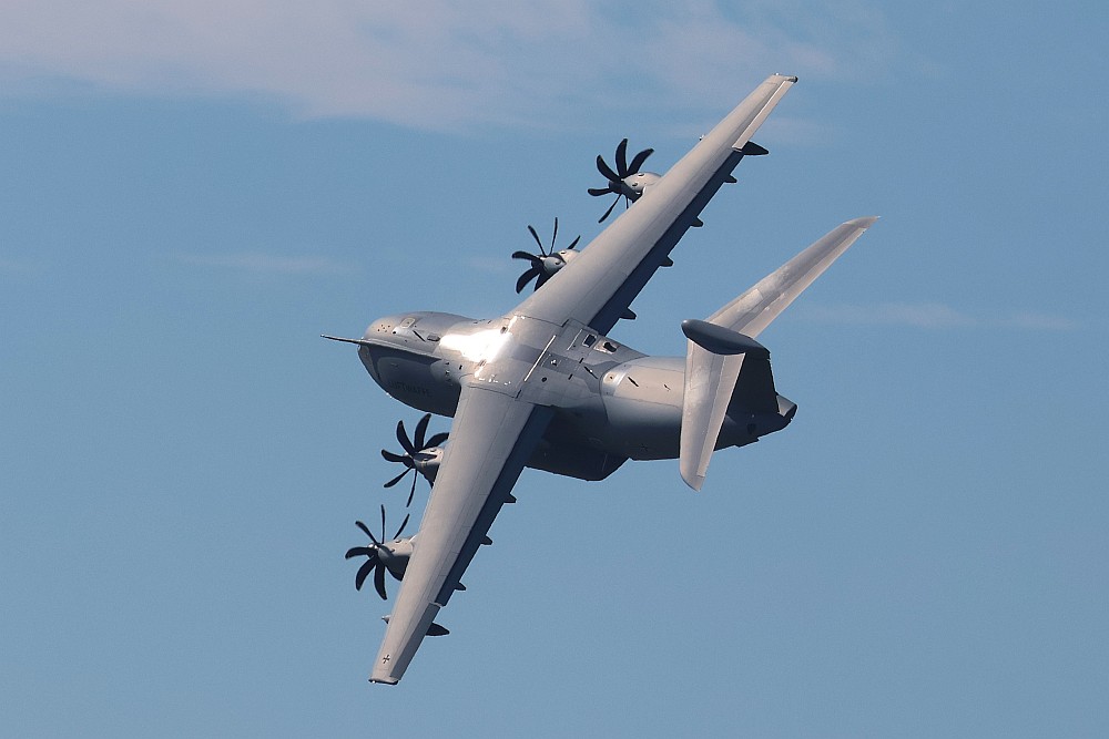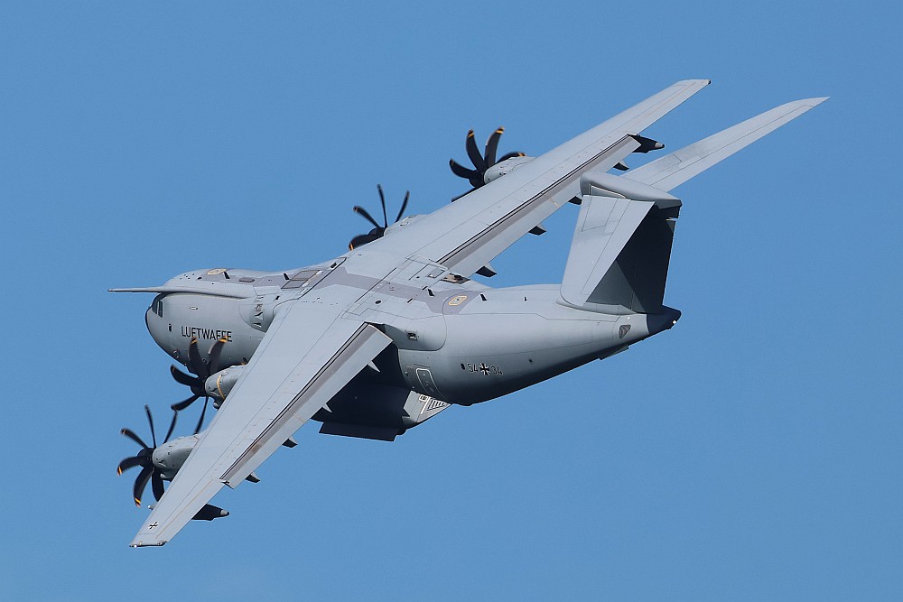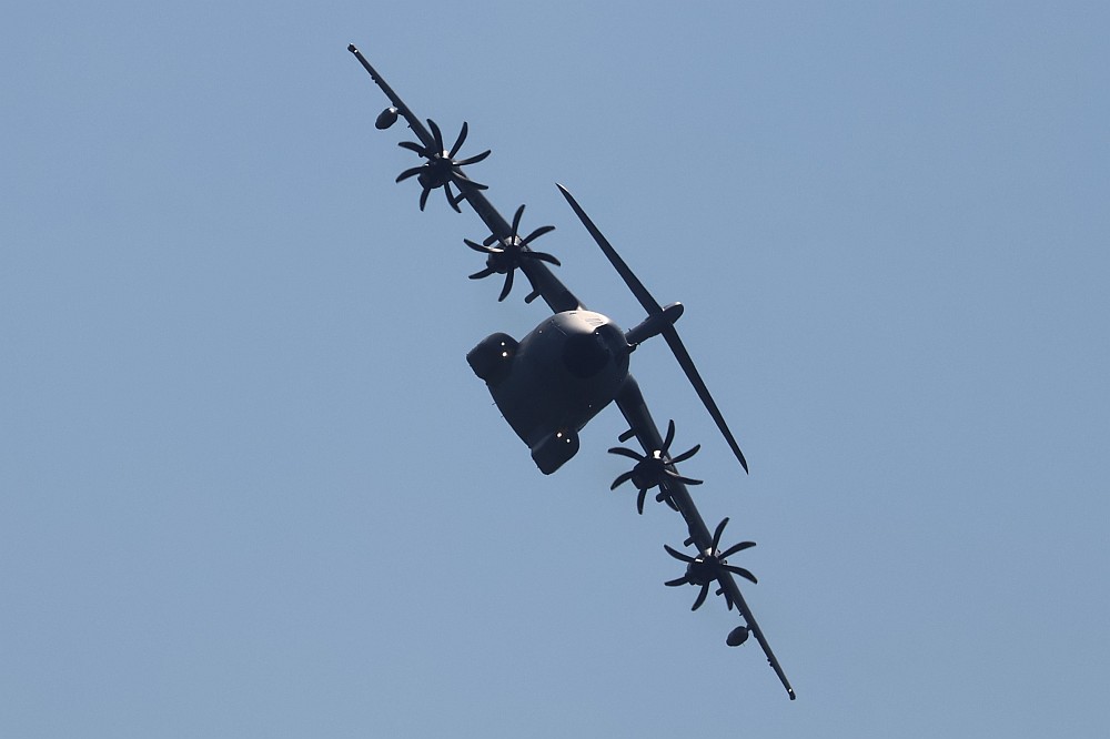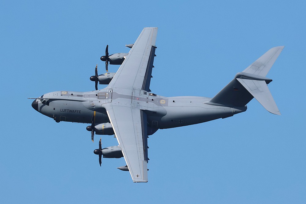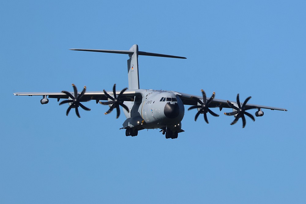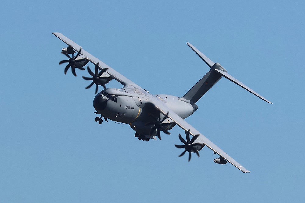 A400M der deutschen Luftwaffe bei der Flugvorführung.