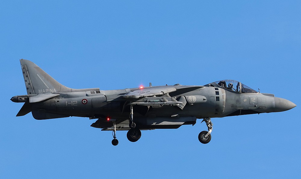 Der AV-8B Harrier der italienischen Marineflieger, ein senkrechtstartfähiger Jagdbomber.
