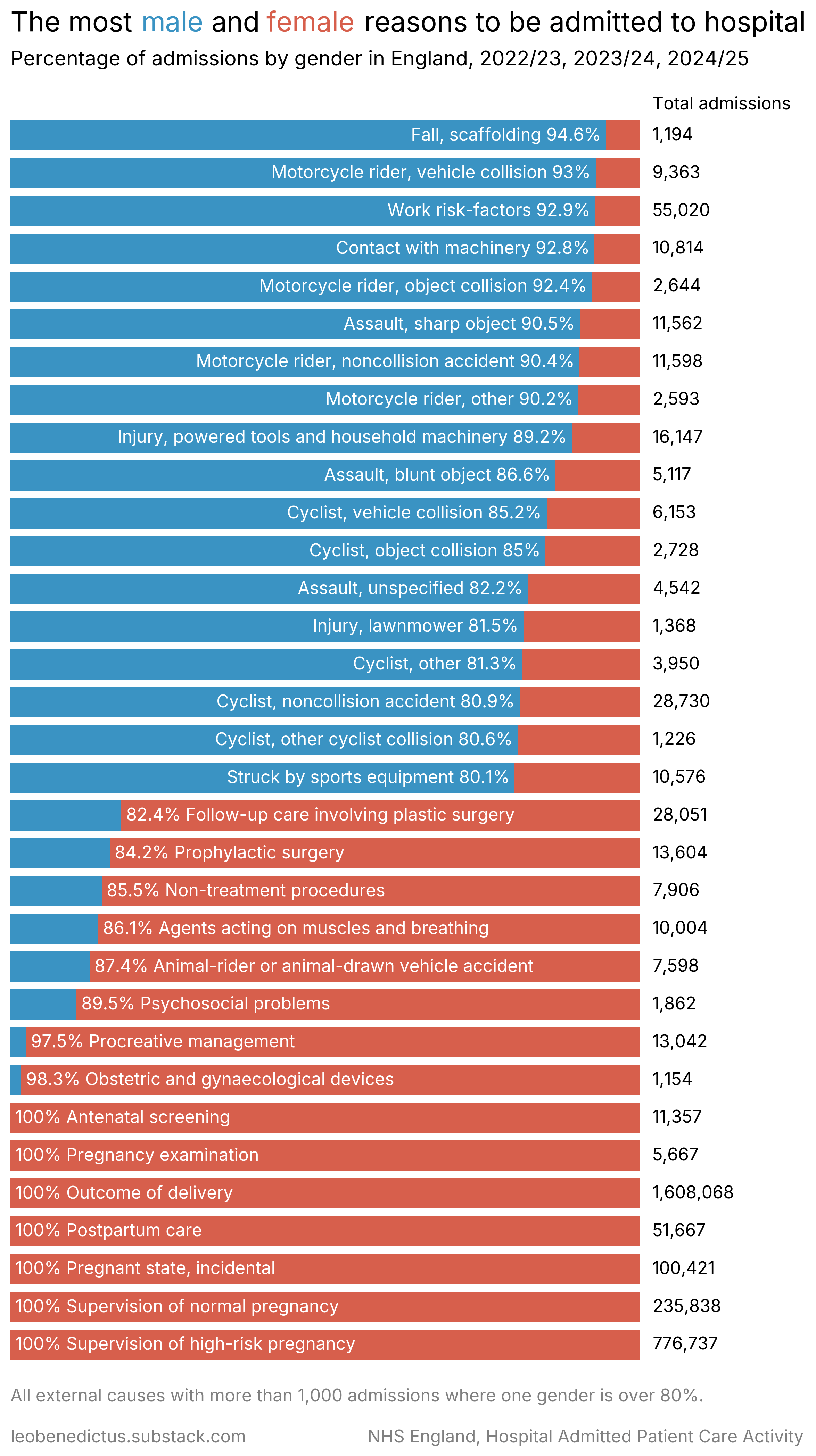 Really feels like the graph should be sorted by number of admissions rather than most male to least male admissions, but that wouldn’t make it “beautiful”, merely much more useful.