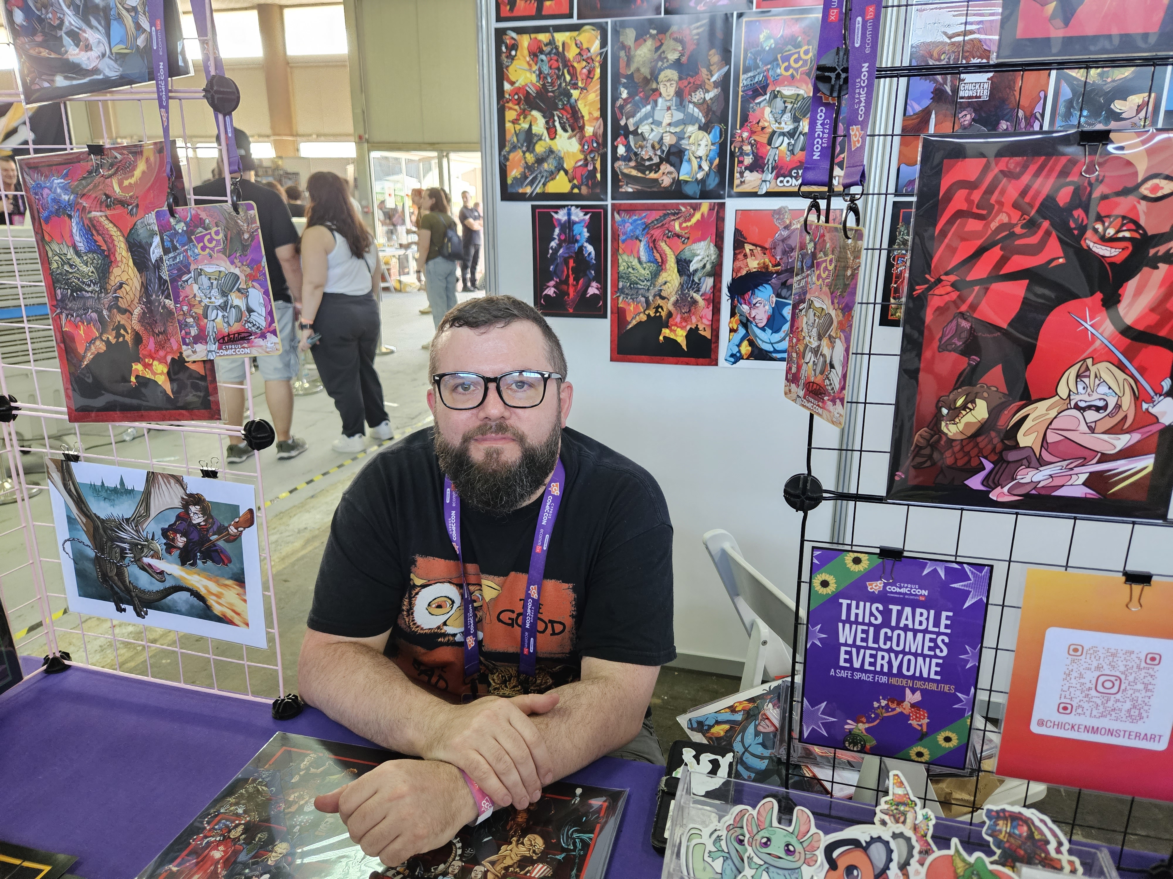 In London (where he’s based) there’s MCM Comic Con, “that’s the really big one. But it’s more like a corporate business, where you don’t really get looked after – whereas here they embrace you as part of their family… People just generally seem, like, a bit more happy.”