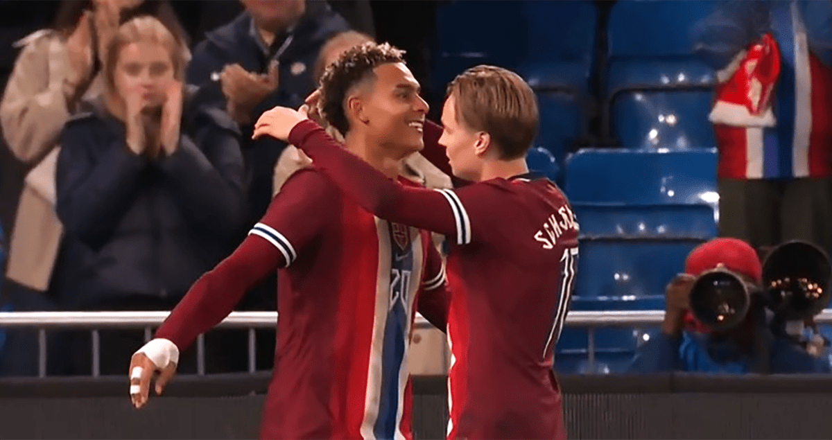 Antonio Nusa (left) … scored the equaliser for Norway.