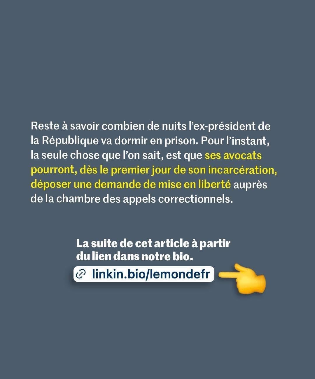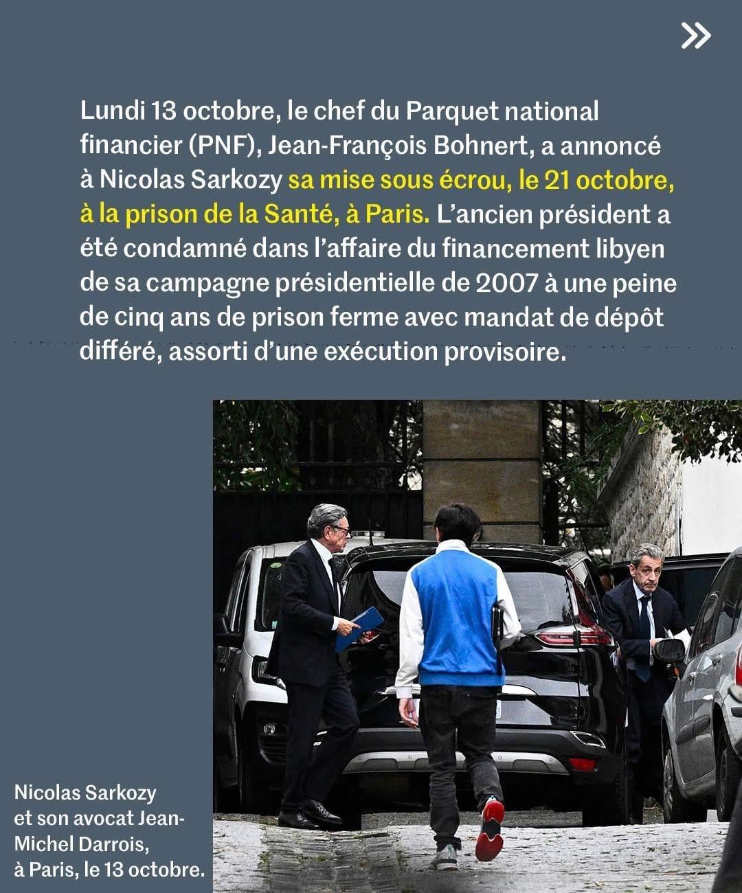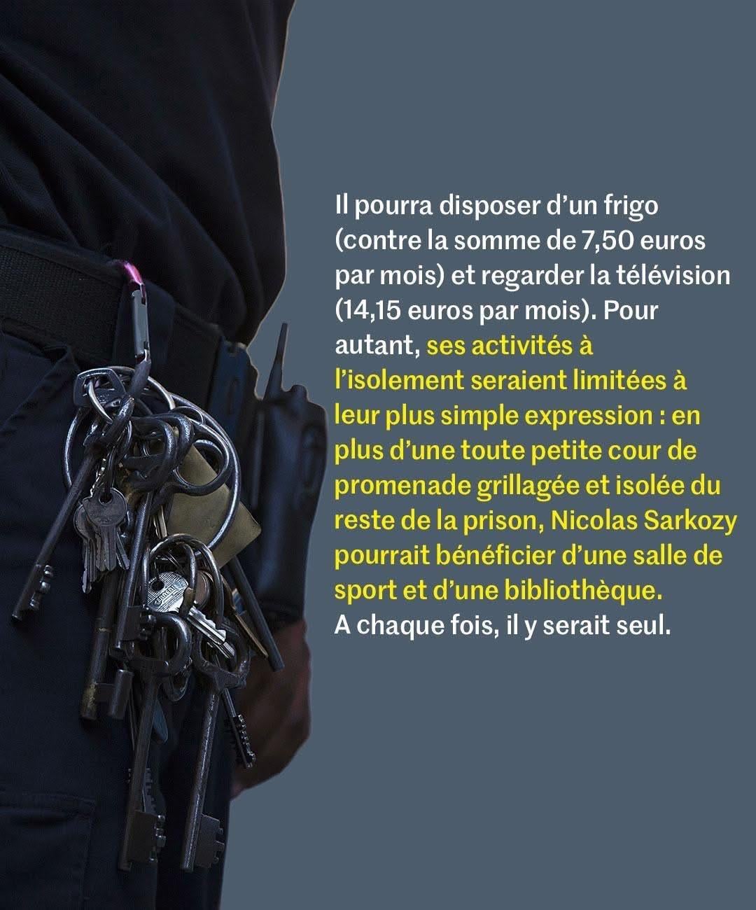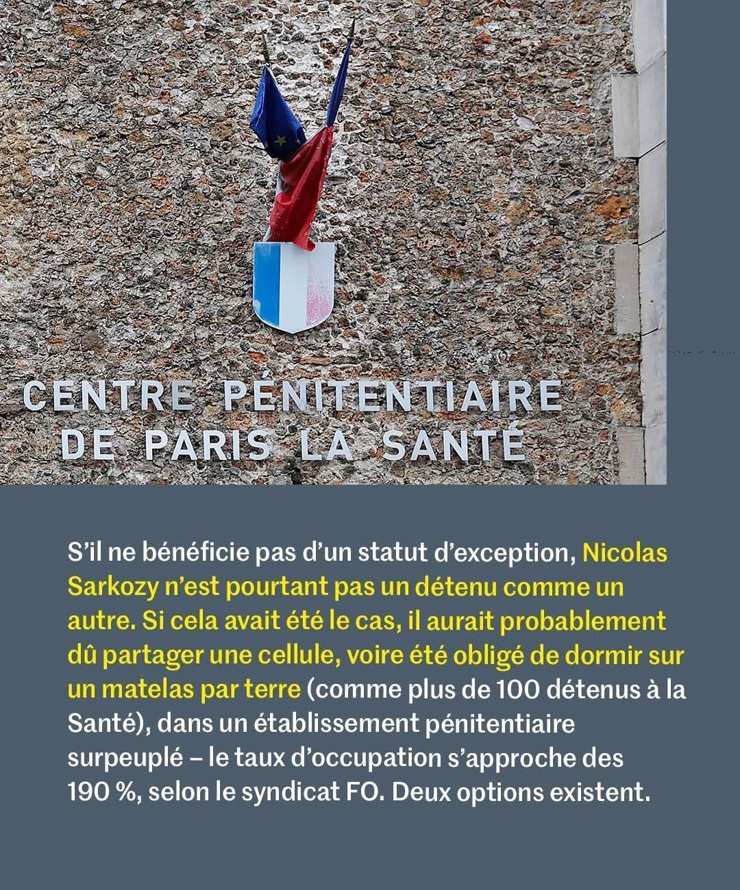 L’article : [« Quartier VIP » ou isolement : ce que l’on sait des conditions de détention de Nicolas Sarkozy, à partir du 21 octobre](https://www.lemonde.fr/politique/article/2025/10/13/quartier-vip-ou-isolement-ce-que-l-on-sait-des-conditions-de-detention-de-nicolas-sarkozy-a-partir-du-21-octobre_6646313_823448.html?fbclid=IwdGRjcANbOlVleHRuA2FlbQIxMQABHpDrGuCd74Gm-GwPWv6nZOaTZp2p8XgfA4nGIXnM5ylrjCx8OnEnNz2r9Mqi_aem_MxBAs4Z5Br8fGSFmqMszfg)