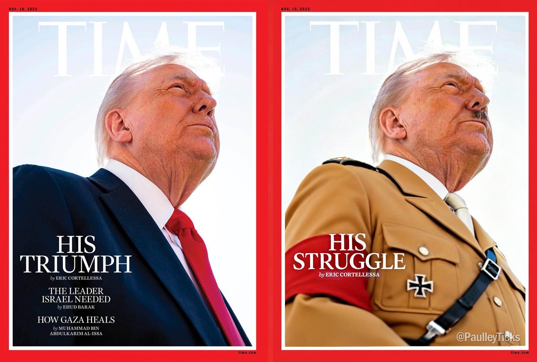 Genuinely sickening that the left one is actually real. Spineless from Time Magazine.
