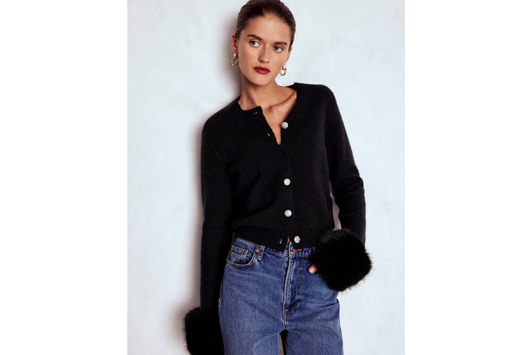 It might be quite far out, but I’m already looking ahead to party season dressing. This black cardigan has added glamour thanks to the exaggerated faux fur cuffs and jewel buttons. Style it with jeans and loafers for the office before changing into a black skirt for the work Christmas party.