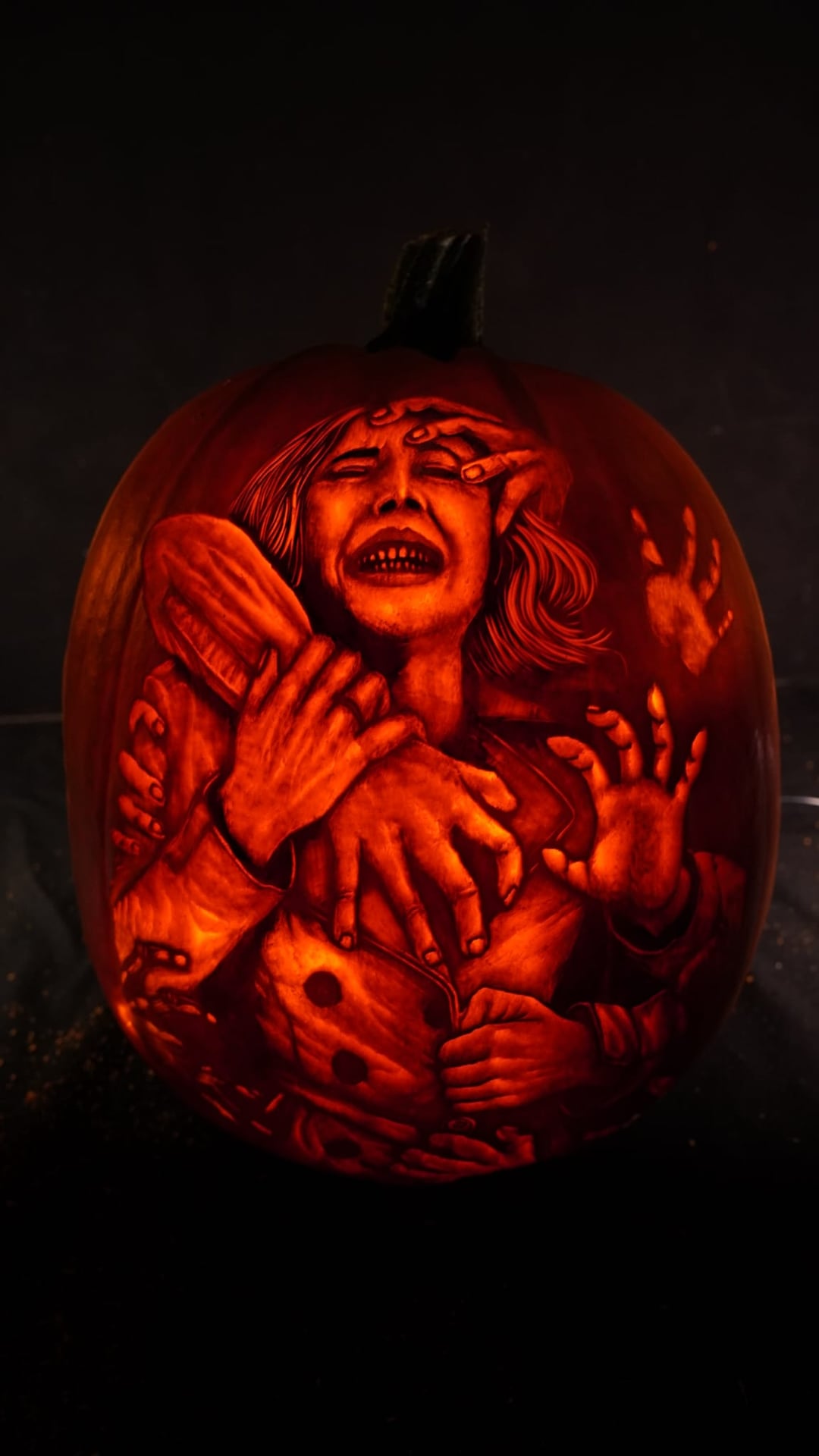 This all started about 10 years ago when we would getl together for an annual pumpkin carving piss-up. Now he's on the news every October.