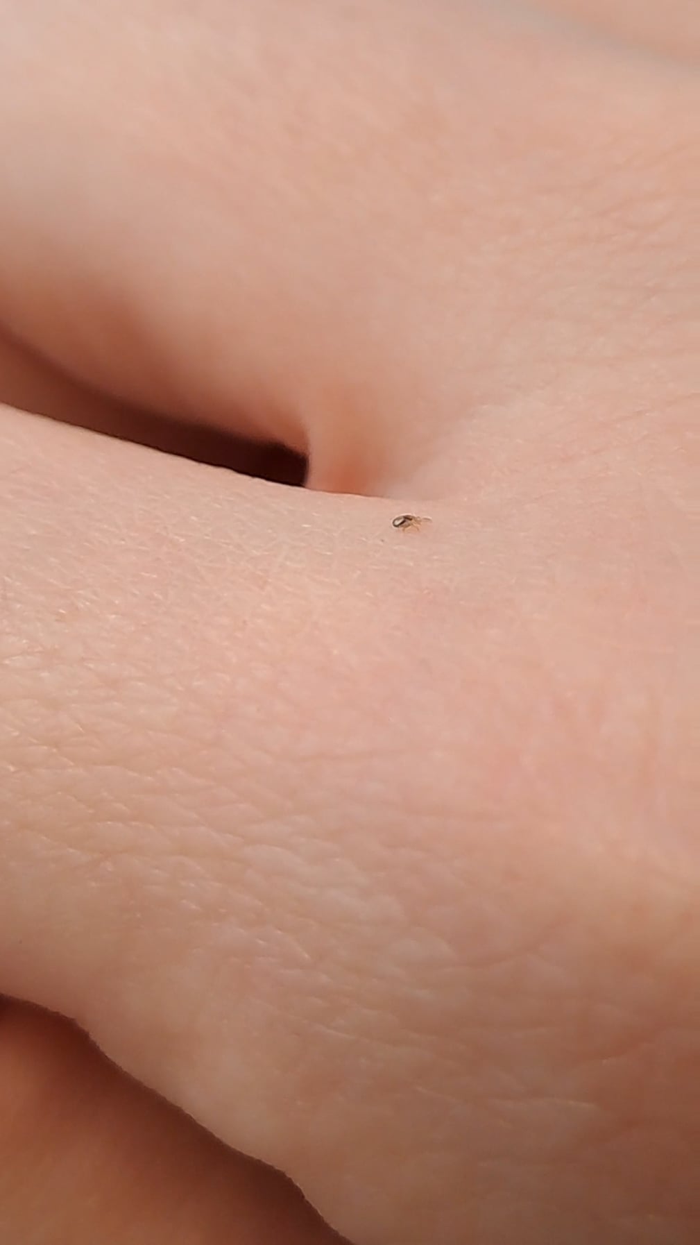 Erscheint mir etwas flott unterwegs für eine Zecke. Vielleicht ist’s auch ein Floh 🤌