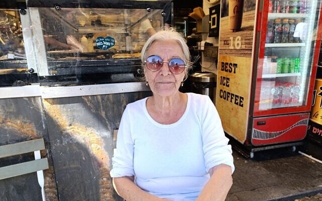 Carmella, a Jerusalemite, at the Mahane Yehuda market, October 15, 2025 (Zev Stub/Times of Israel)