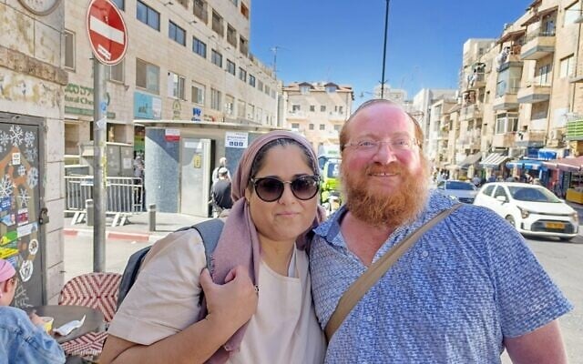 Eli and Rachel Shur at the Mahane Yehuda market, October 15, 2025 (Zev Stub/Times of Israel)
