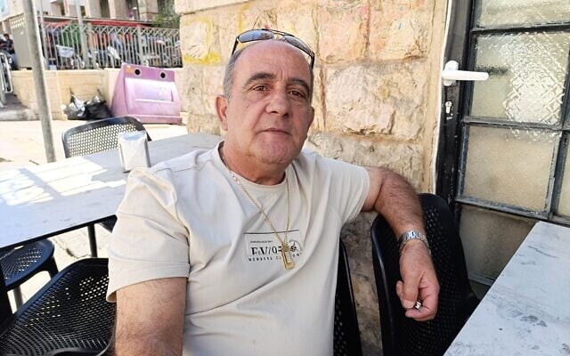 Benny, a Jerusalemite, at the Mahane Yehuda market, October 15, 2025 (Zev Stub/Times of Israel)