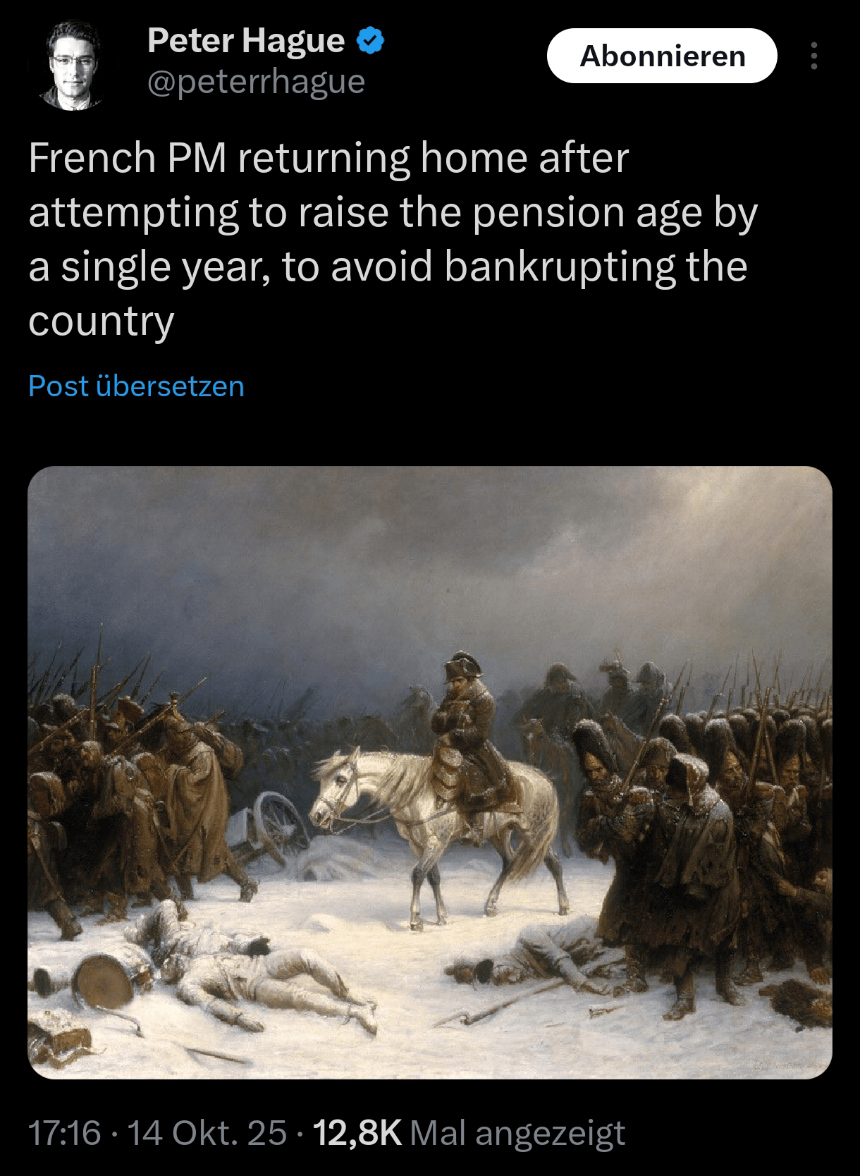People getting older and older and fewer children are born. The French won’t accept any raise in retirement age or lowering the retirement money. You are the next president, how will you resolve it?