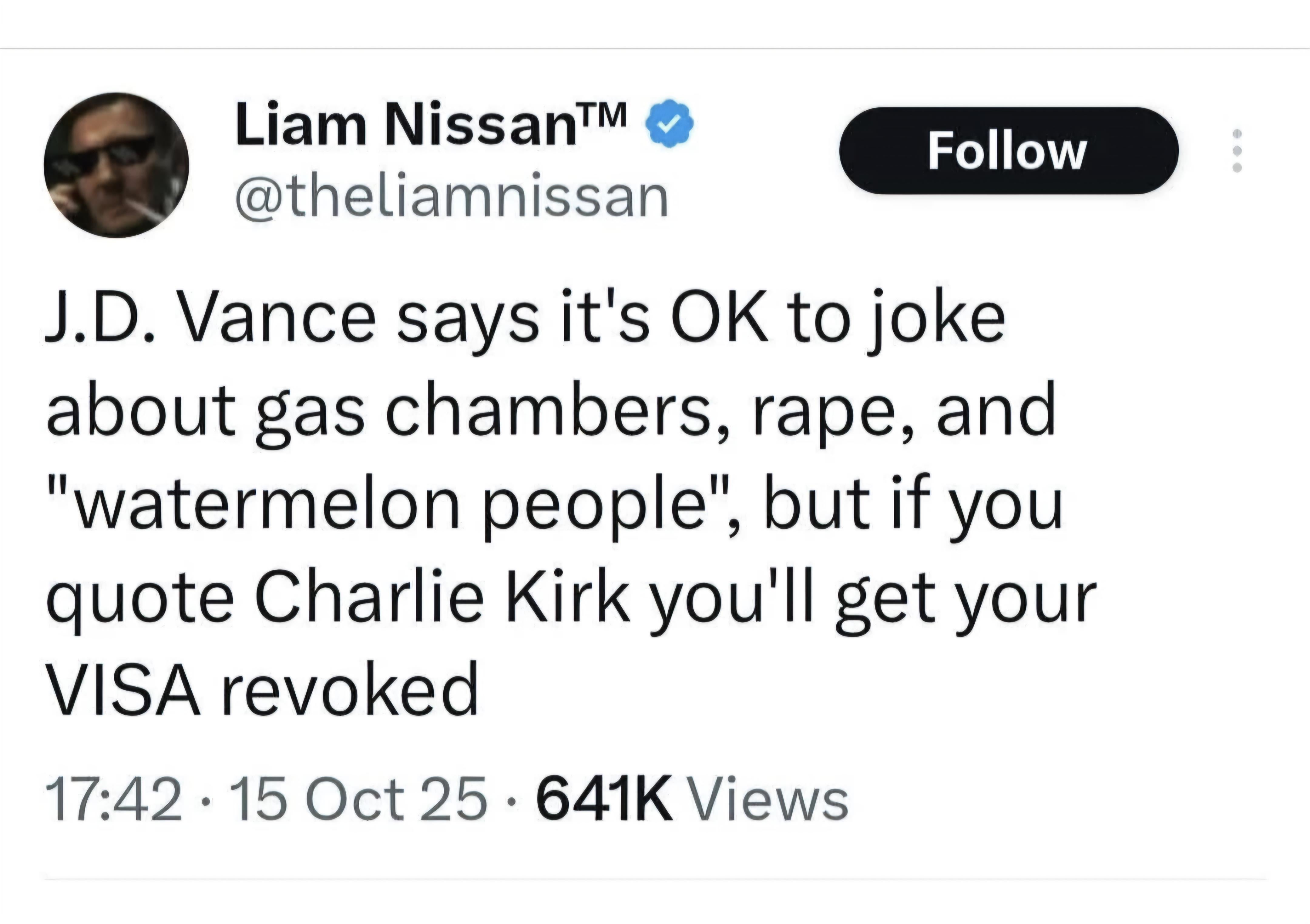 I assume that all those things are also not okay to joke about if it was done by an immigrant they wanted to get rid off.