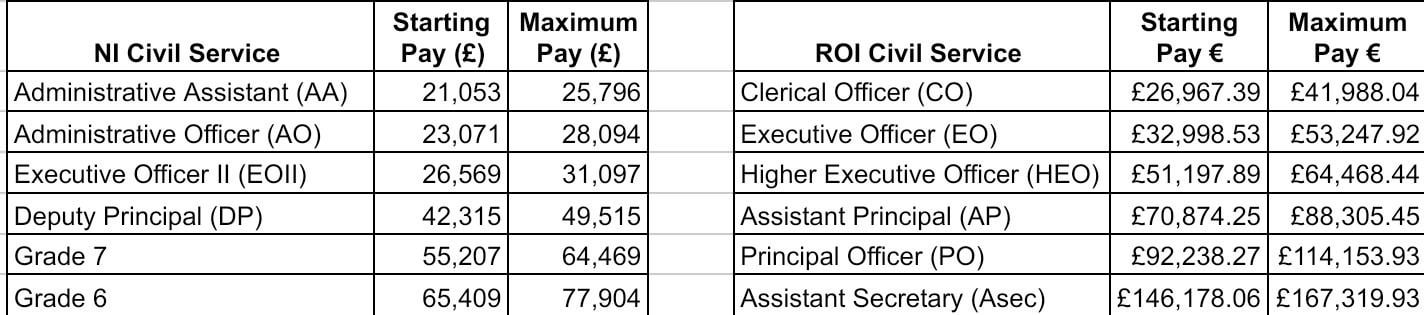 A colleague of mine is thinking of making the move across the border to be closer to his partners family. He's currently working in the Republic's civil service and spoke about possibly making the jump to the civil service in Belfast.