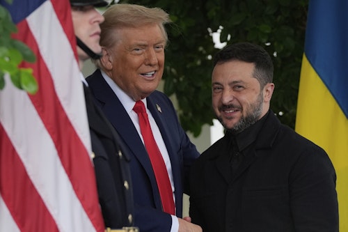 Donald Trump and Volodymyr Zelenskyy met on the sidelines of the NATO summit in The Hague, where Trump formalised his strategy of increasing the military burden on European allies by pushing for a substantial raise in the alliance’s compulsory defence spending commitments.