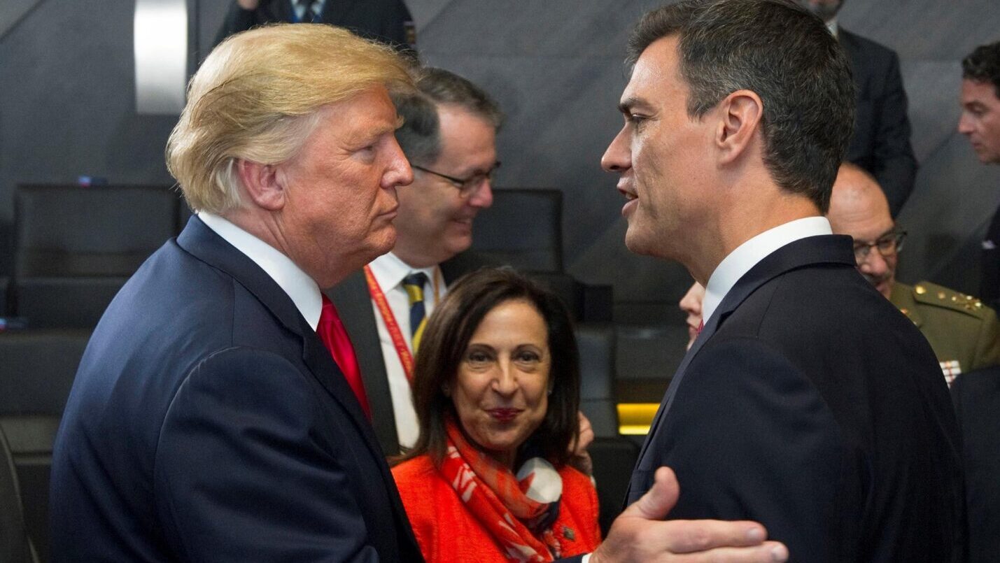 Donald Trump saluda a Pedro Sánchez en la anterior cumbre de la OTAN en presencia de Margarita Robles Efe