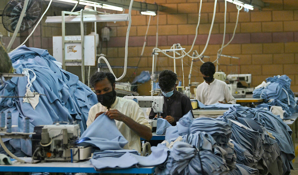 Garment factory workers inside a manufacturing facility in Karachi on July 8, 2025. (AFP/File)