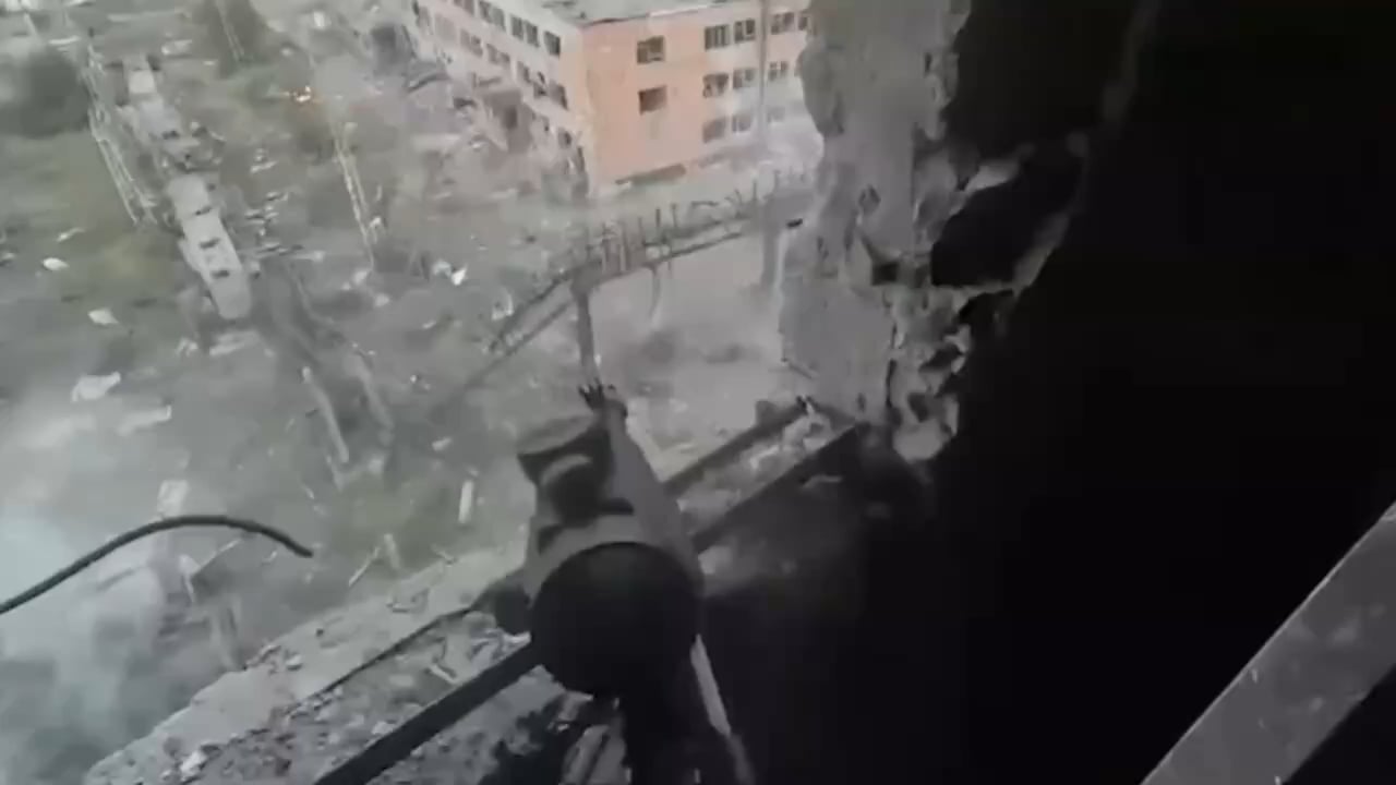 A Ukrainian soldier fires small arms at Russian soldiers assaulting his position as well as records an FPV drone strike during the battle for the Yuzhnodonbasskaya No. 1 mine (archive footage, exact date unknown)