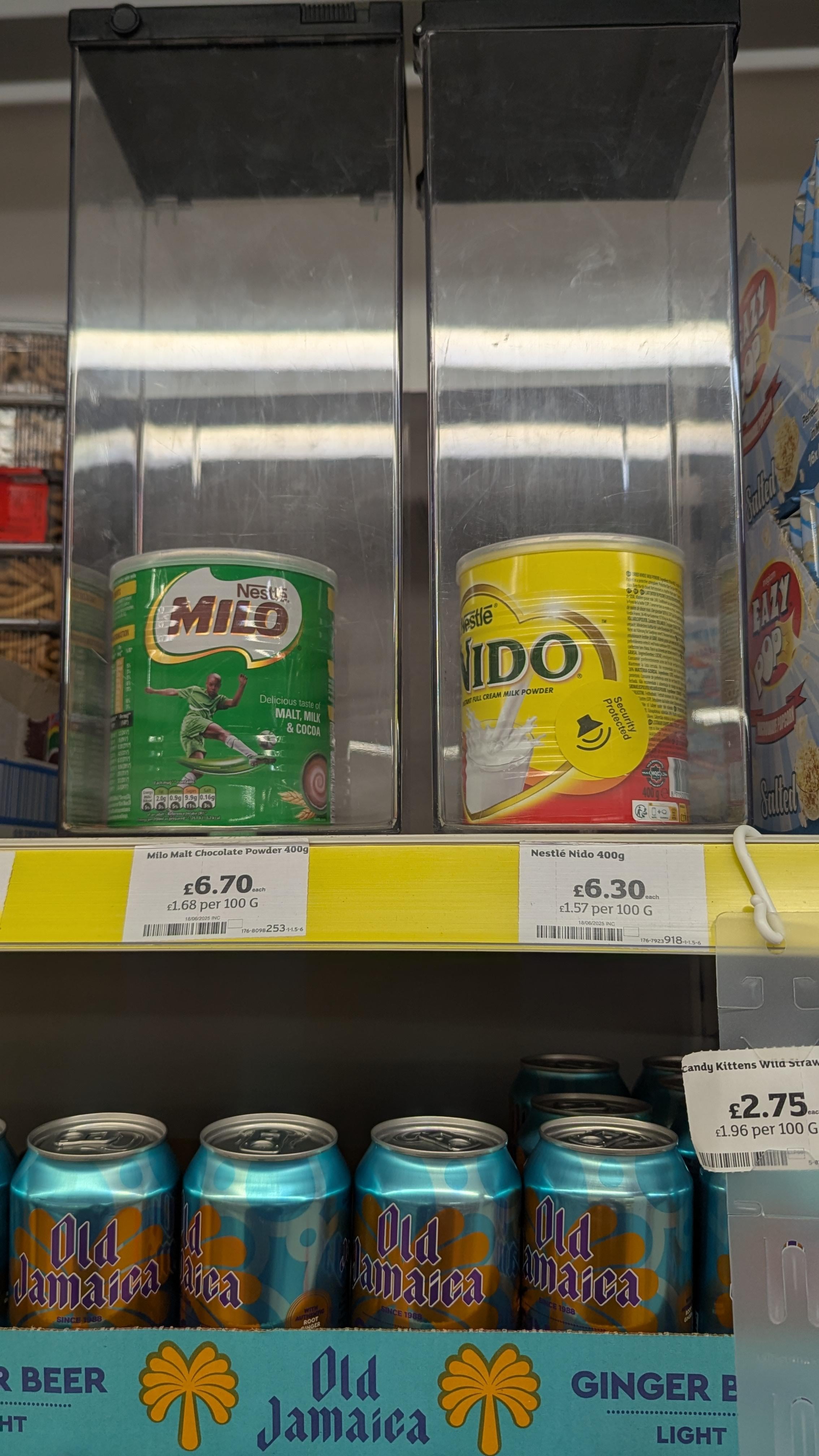 Milo Singapore and Ghana used to cost 3-5.50, that’s an eye watering cost. Anyway, some shop manager has decided they’re getting stolen so is locking them up. Just bleak times. Milo being for kids though… debateable.