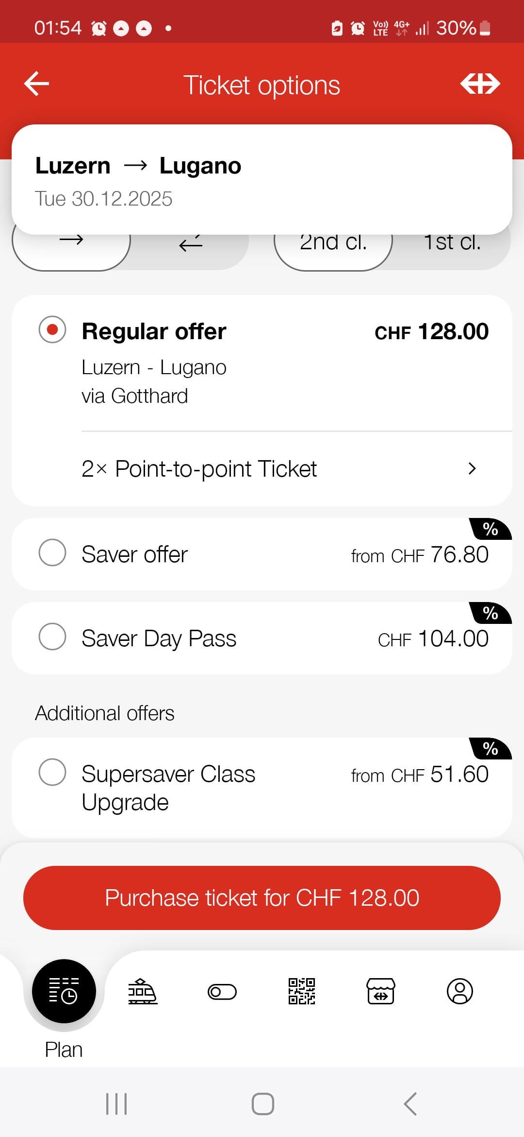 Class upgrade – only valid with a 2nd class ticket, transforms it into a 1st class ticket