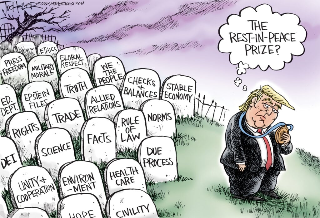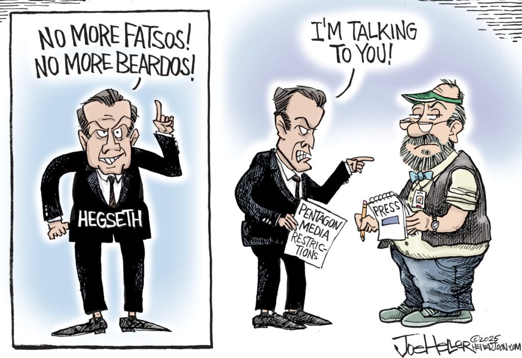 Joe Heller was the editorial cartoonist for the Green Bay Press-Gazette in Green Bay, Wis., from 1985 until being laid off in July 2013. He still draws several cartoons a week and distributes them through his own syndicate. Through Heller Syndication, his cartoons regularly appear in more than 400 newspapers, making him the most successful self-syndicated editorial cartoonist in the nation. His cartoons are reprinted many times in USA Today, Denver Post, St. Paul Pioneer Press, The New York Times, the Los Angeles Times, Newsweek Japan, The Week and The Washington Post. Joe’s cartoons have won numerous distinctions, including 10 Best of Gannett awards, eight Milwaukee Press Club awards and two Honorable mentions for the John Fischetti Award. He lives in Green Bay with his wife, Pamela. He is a regular featured cartoonist for the NKyTribune.