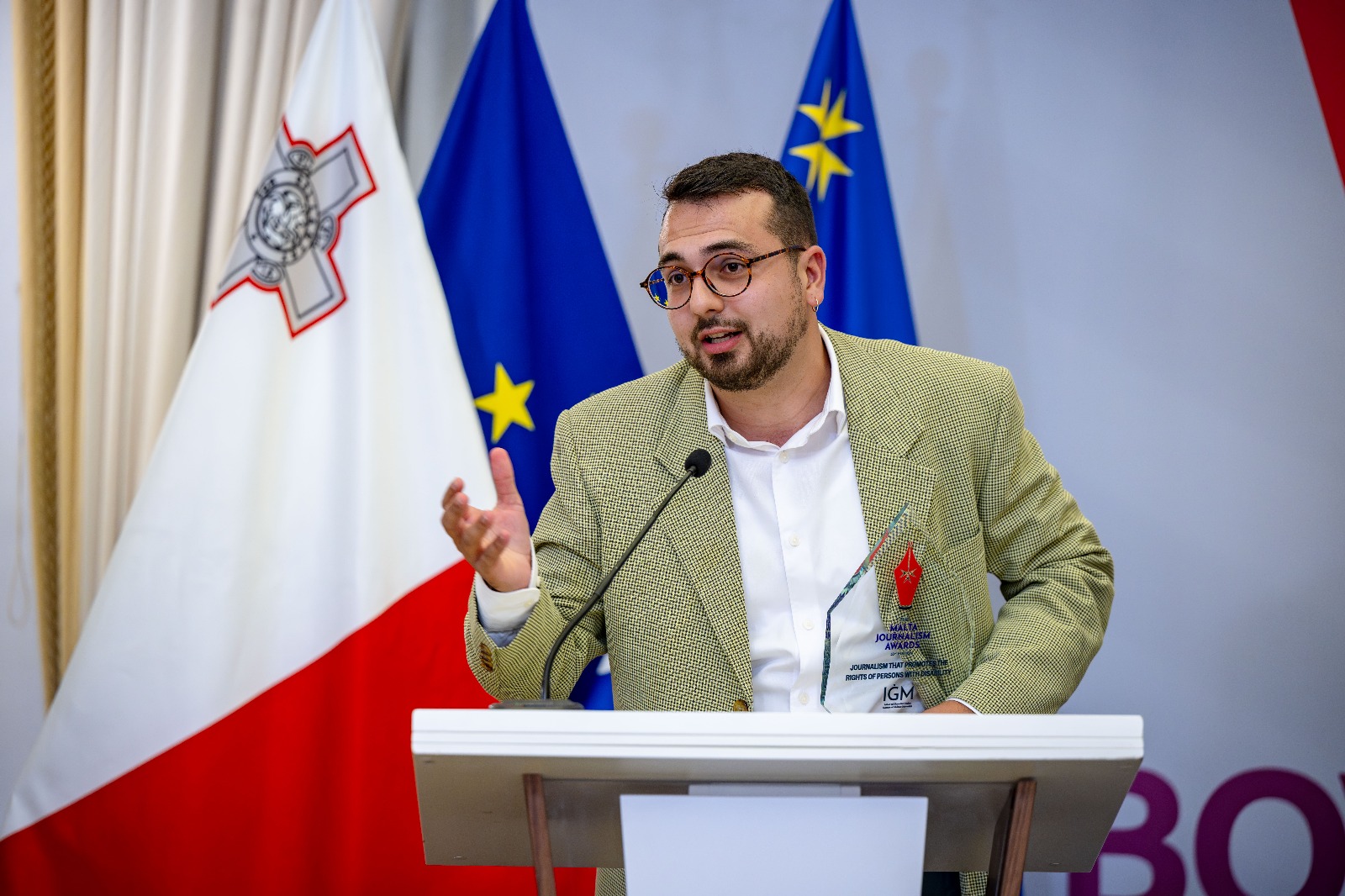The ceremony, held under the auspices of the President’s Office, recognised outstanding work across 20 categories. Gabriel Lia, a journalist with RTK/Newsbook Malta, won the award for Journalism that Promotes the Rights of Persons with Disability for an interview on the BTW programme. Lia was also a finalist in three other categories, including Most Promising Journalist and Sports Journalism.