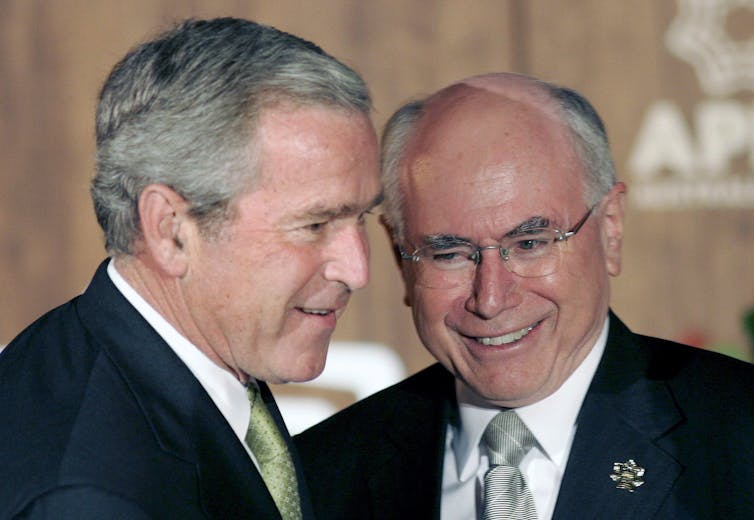 US President George W. Bush (left) is greeted by Australian Prime Minister John Howard in Sydney in 2007.
