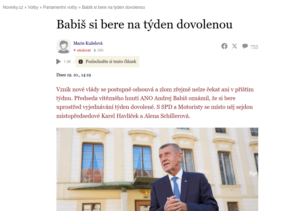 Nic neříká “Makáme” víc, než když si budoucí premiér vezme dovolenou uprostřed vyjednávání o budoucí vládě.