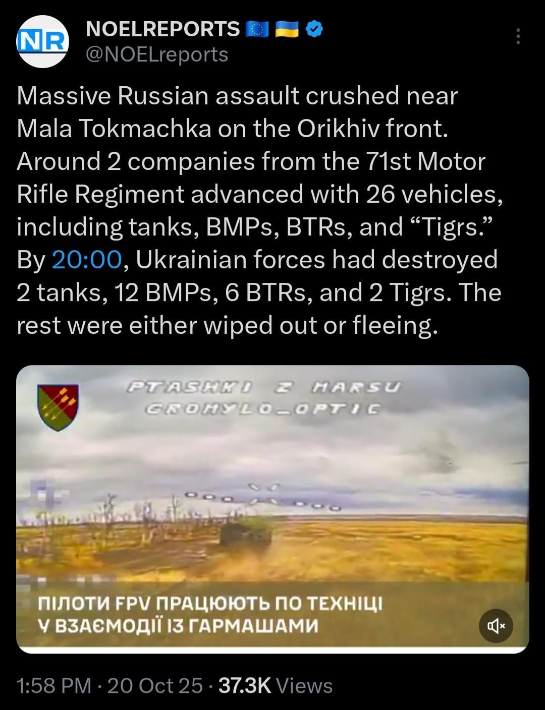 https://x.com/NOELreports/status/1980378023540203536?s=19 , Here in the link is the combat footage from the Ukraine drones POV.