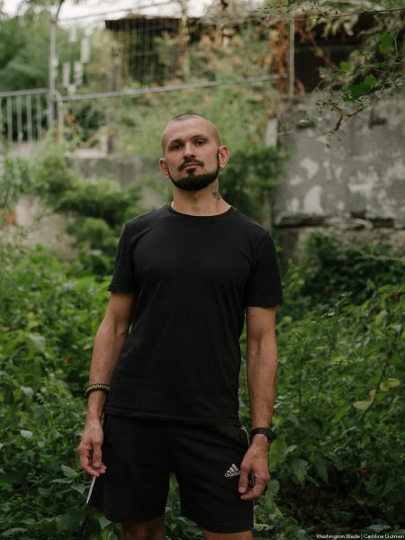 Victor Pylypenko, a Ukrainian veteran and co-founder of K-41, poses for a portrait, on September 9, 2025. (Washington Blade photo by Caroline Gutman)