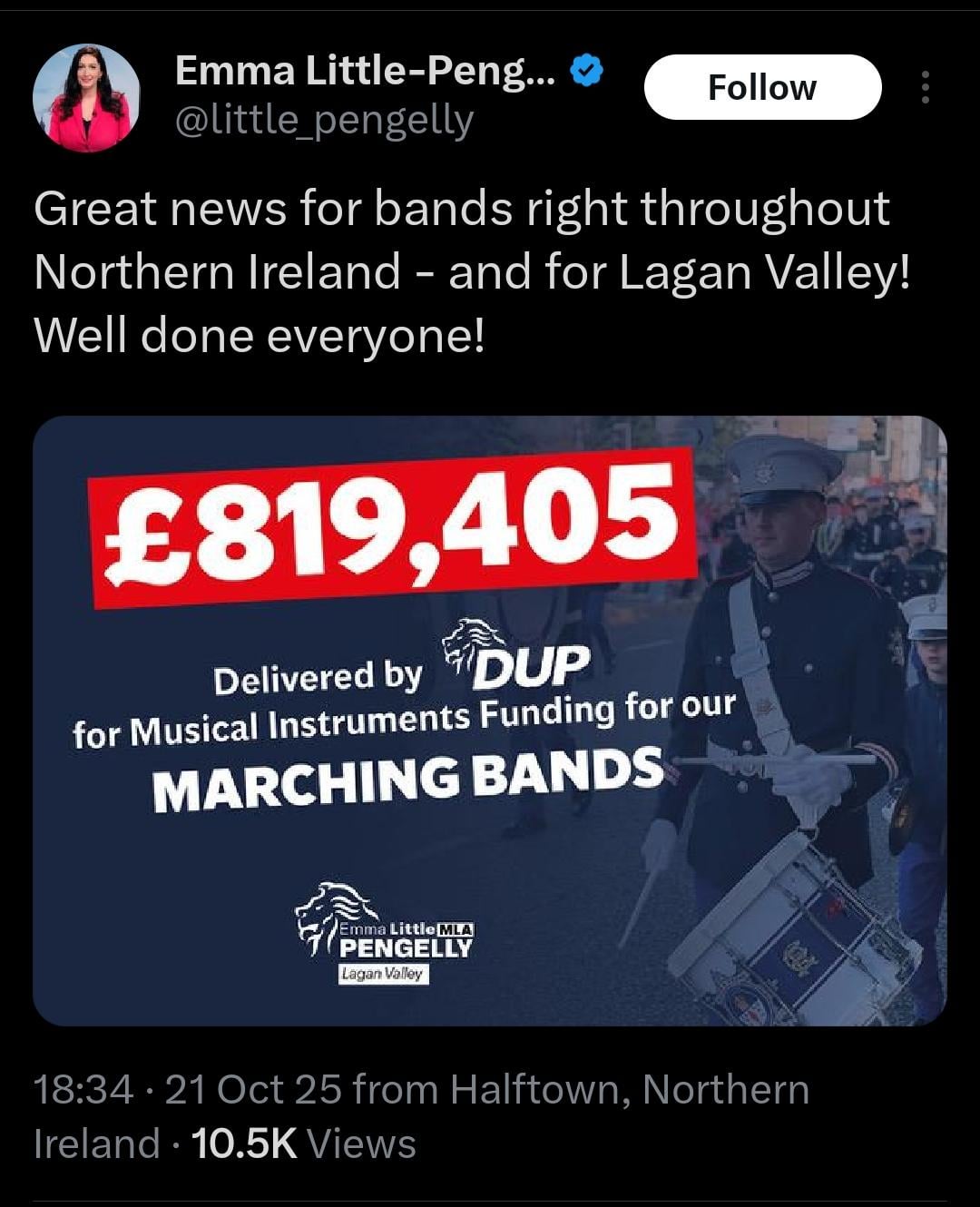 5. Dont really have an issue with that but could they not fund instruments to unionist/protestant schools for the kids as opposed to the OO?