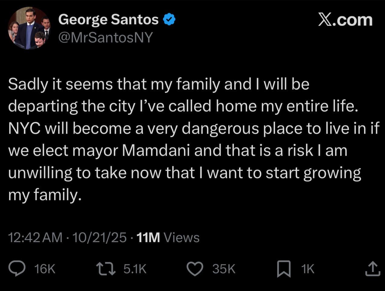 George Santos (Convicted Felon) announced that he’s leaving NYC, claiming the city will soon become very dangerous