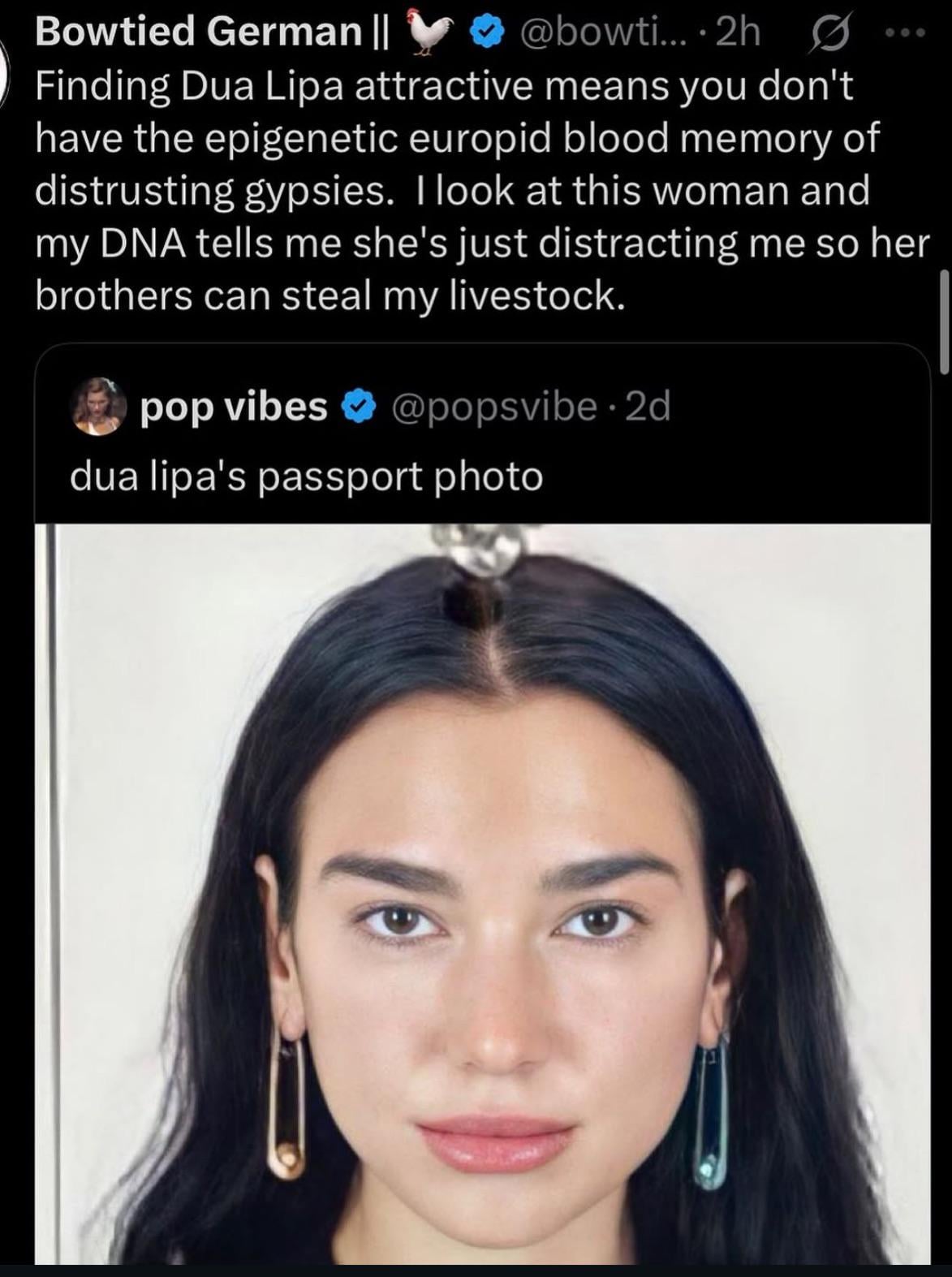 To be fair the only person I know who looks decent or even attractive on her ID card is my girlfriend, I wouldn’t hold gypsy genes against Dua Lipa in this instance.