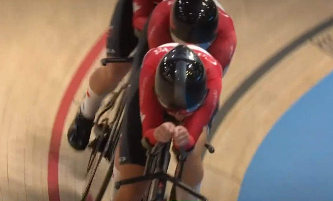 The day began with team pursuit qualification. First came the women, Canadian quartet Lily Plante, Ariane Bonhomme, Fiona Manjendie and Alexandra Volstad just missing out on making the first round with 4:25.054 over four kilometres. Italy was the fastest with 4:09.609. The Canadian men’s squad of Dylan Bibic, Mathias Guillemette, Sean Richardson and Chris Ernst, slotted in at 11th with 3:53.811, ten seconds slower than top outfit Denmark.