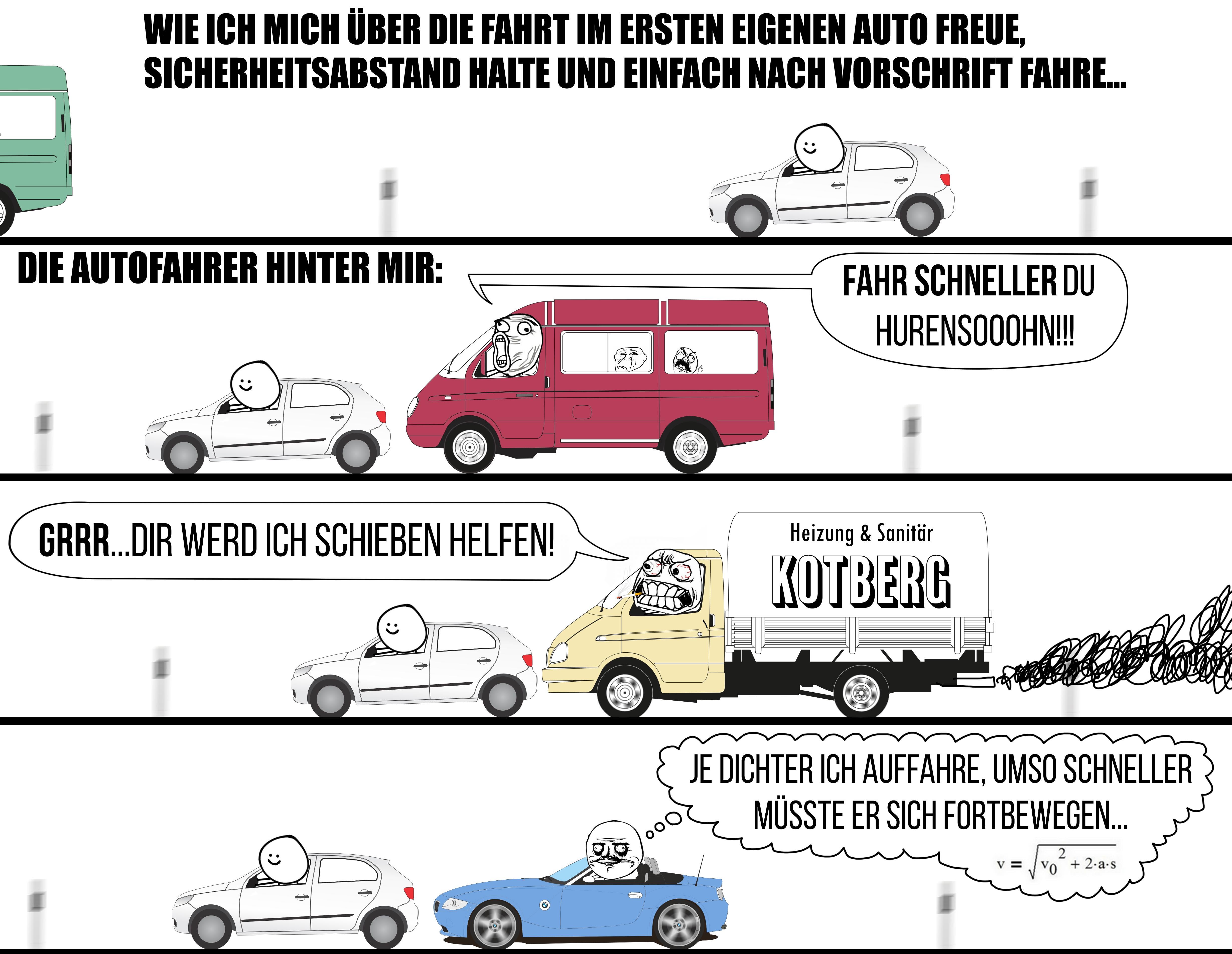 Ich, wenn ich es wage bei 50 nur 65 zu fahren. Die Autofahrer hinter mir: