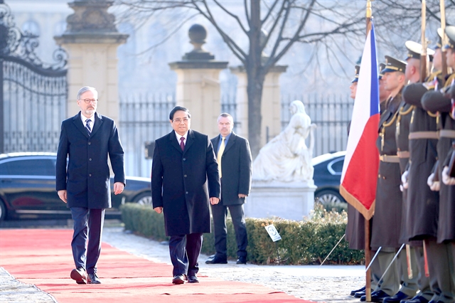 Czech Prime Minister Petr Fiala welcoming Vietnamese Prime Minister Phạm Minh Chính in Prague on January 20, 2025. — Photos Courtesy of the embassy